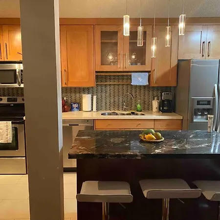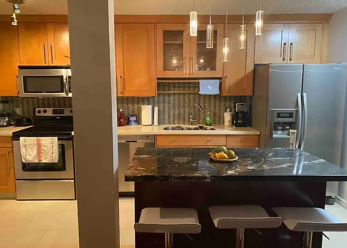 Nestled in a tranquil neighborhood, the Beautiful Two Bedroom Apartment is the perfect retreat for travelers seeking comfort and convenience. Just 9 kilometers from the Calgary International Airport, this spacious accommodation is ideally situated for both relaxation and exploration, featuring quiet street views that ensure a peaceful atmosphere. With the vibrant Downtown West Kerby only 3 kilometers away, guests can easily access the best of Calgary's attractions. The Beautiful Two Bedroom Apartment boasts two elegantly designed bedrooms, complemented by a tastefully furnished seating area where guests can unwind. The well-equipped kitchen is a culinary enthusiast's dream, featuring a dishwasher, stovetop, oven, and refrigerator, ensuring that all your cooking needs are met. A flat-screen TV provides entertainment during downtime, while the stylish bathroom includes a luxurious spa bath for the ultimate relaxation experience.